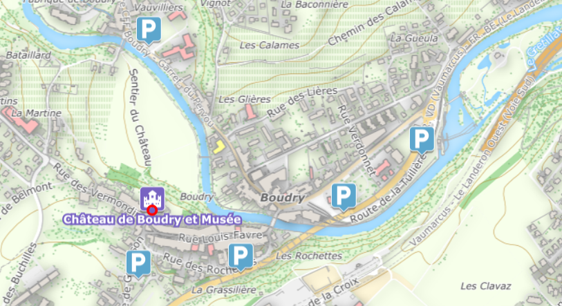 Pour votre confort, des places de parking sont mentionnées sur la carte.